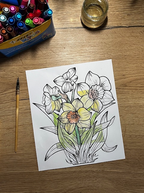 Je vous propose une activité artistique simple et poétique : peindre des jonquilles à l'aquarelle en jouant avec les contrastes. L'originalité de ce projet réside dans son effet encadré : on dessine un cadre au crayon, et seule la partie intérieure est mise en couleur. Cela crée une belle mise en valeur du sujet, comme une fenêtre sur le printemps !