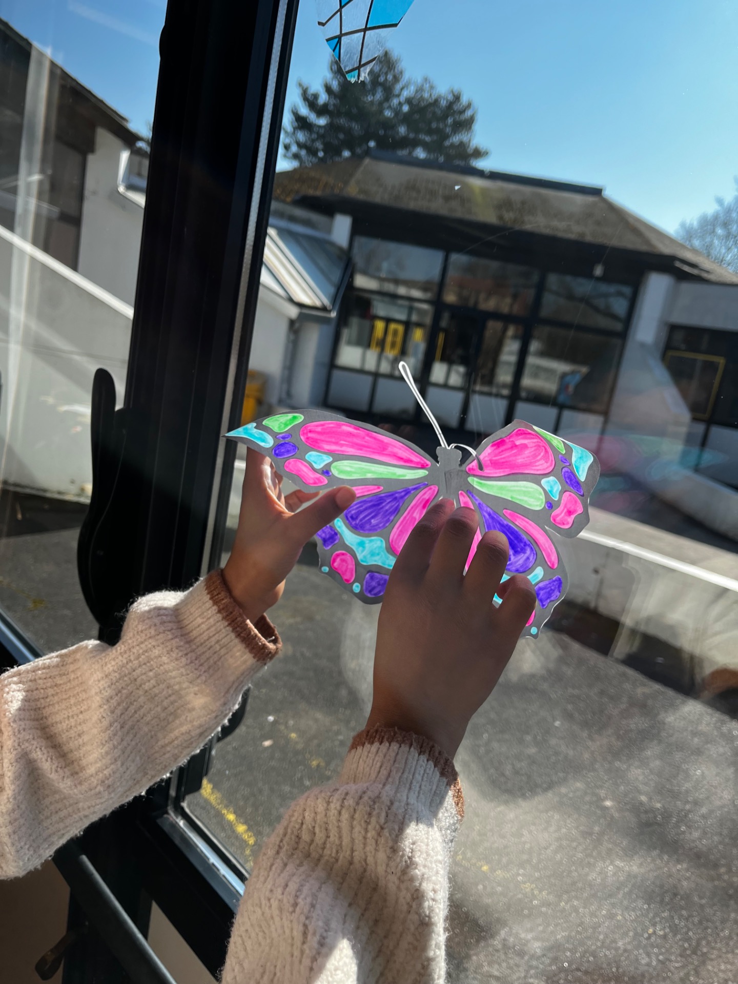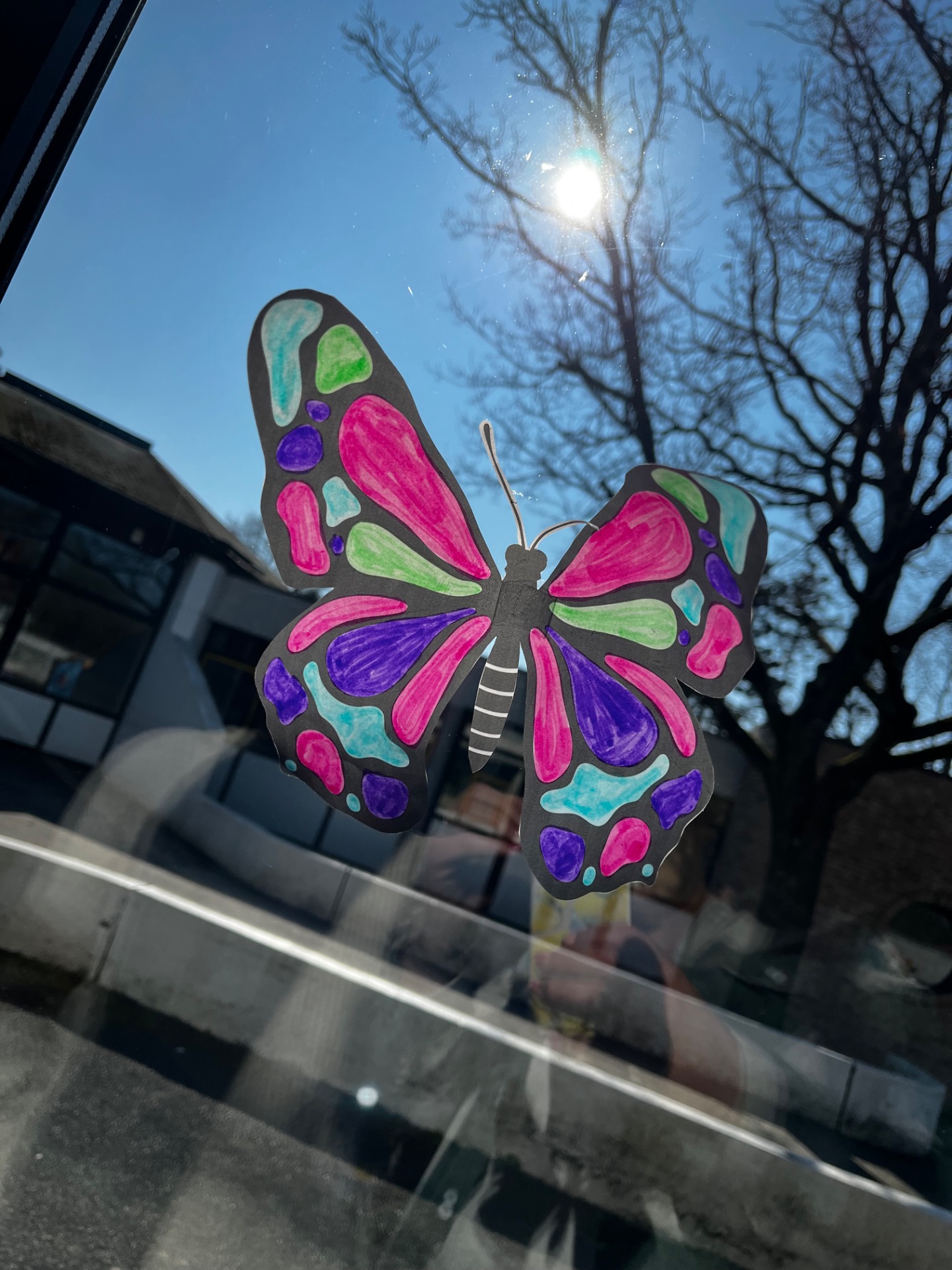 Découper et exposer : Une fois sèche, découpez soigneusement le papillon et collez-le sur une fenêtre. La lumière traversera les couleurs, créant un effet vitrail enchanteur.