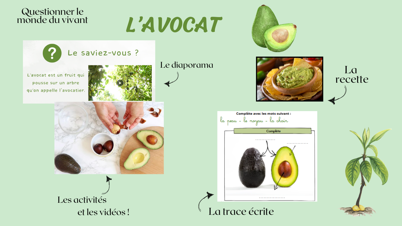 L'avocat est un fruit fascinant qui permet d'aborder de nombreuses notions scientifiques avec les élèves. À travers son observation et sa transformation, ils découvrent le cycle de vie des plantes, leurs besoins et leur développement. Pour rendre cet apprentissage encore plus vivant voici un kit pédagogique complet est mis à disposition.